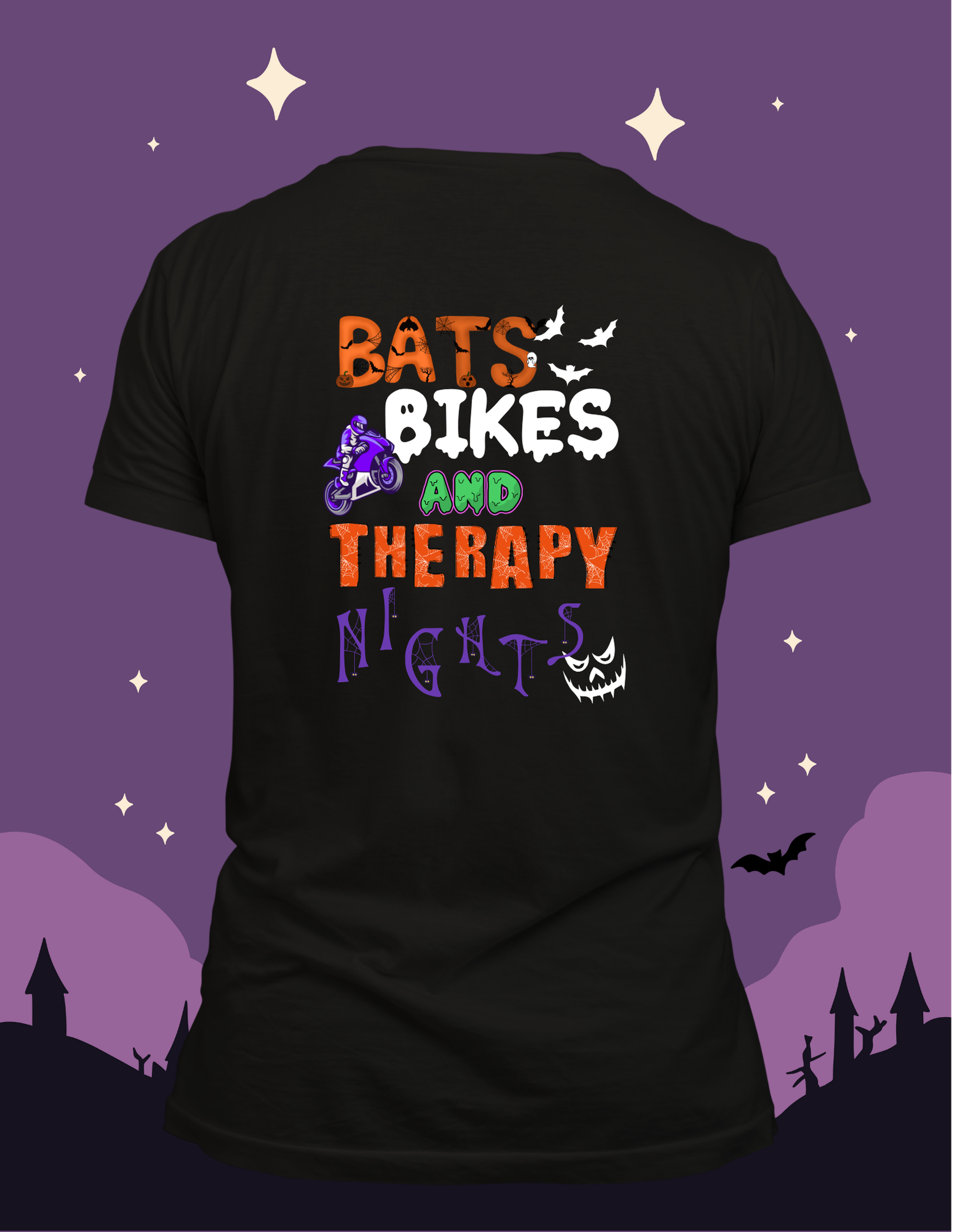Celebrate your passion for Halloween and motorcycles with the Bats, Bikes, And Therapy Nights shirt. This unique shirt blends spooky vibes with biker culture, making it perfect for those who love thrilling rides and eerie nights. Comfortable and stylish, it’s the ideal way to showcase your interests wherever you go. Embrace the spirit of the season and the freedom of the road all at once.