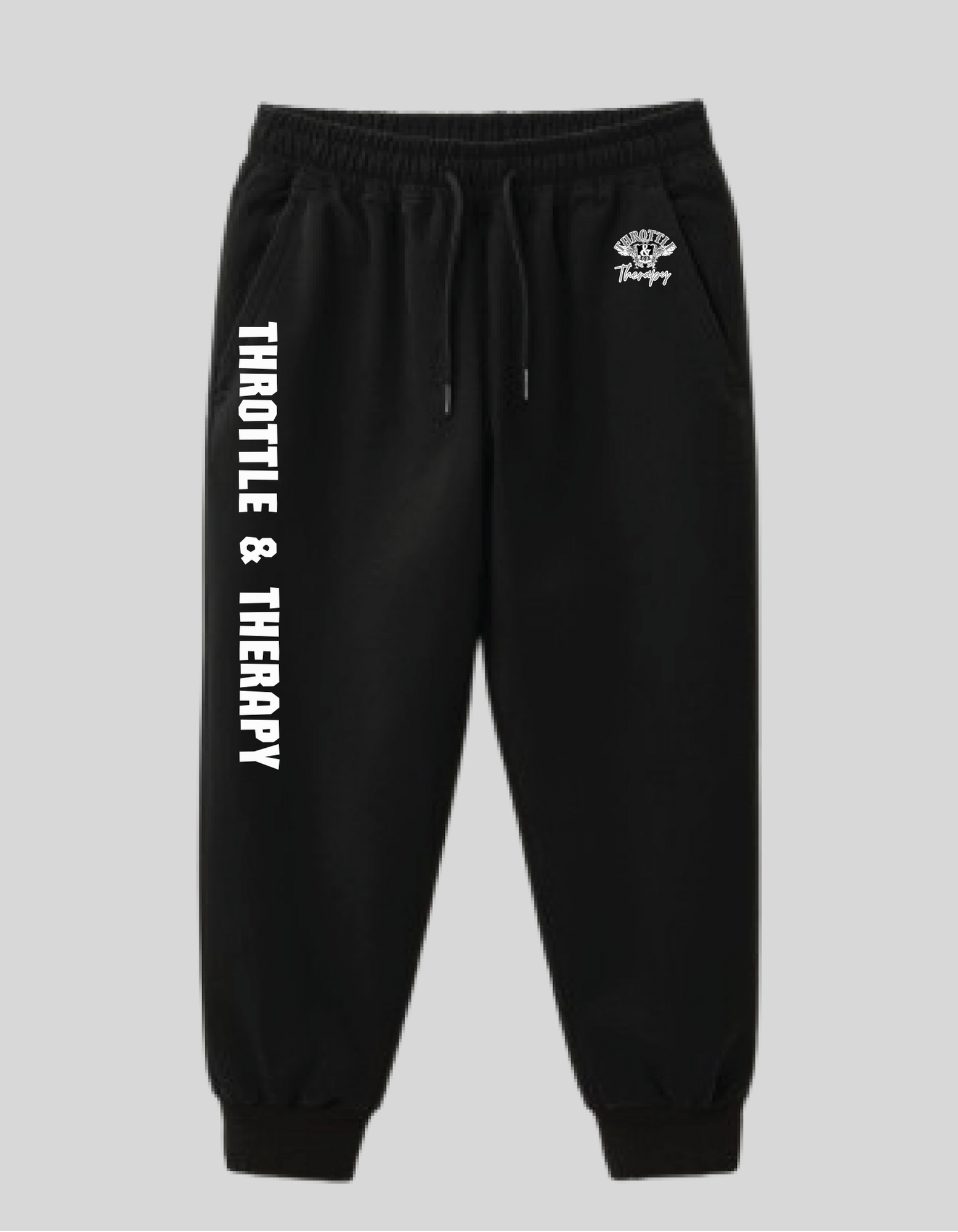 Elevate your everyday comfort with these sleek black joggers featuring the iconic Throttle and Therapy branding. Designed for those who live life in the fast lane, these joggers blend premium comfort with bold style—perfect for casual outings, gym sessions, or unwinding after an adrenaline-fueled day. The classic black colorway pairs effortlessly with any wardrobe, while the embroidered Throttle and Therapy logo makes a statement. Whether you're a gear enthusiast or simply appreciate quality apparel, these joggers deliver the perfect balance of performance and attitude.