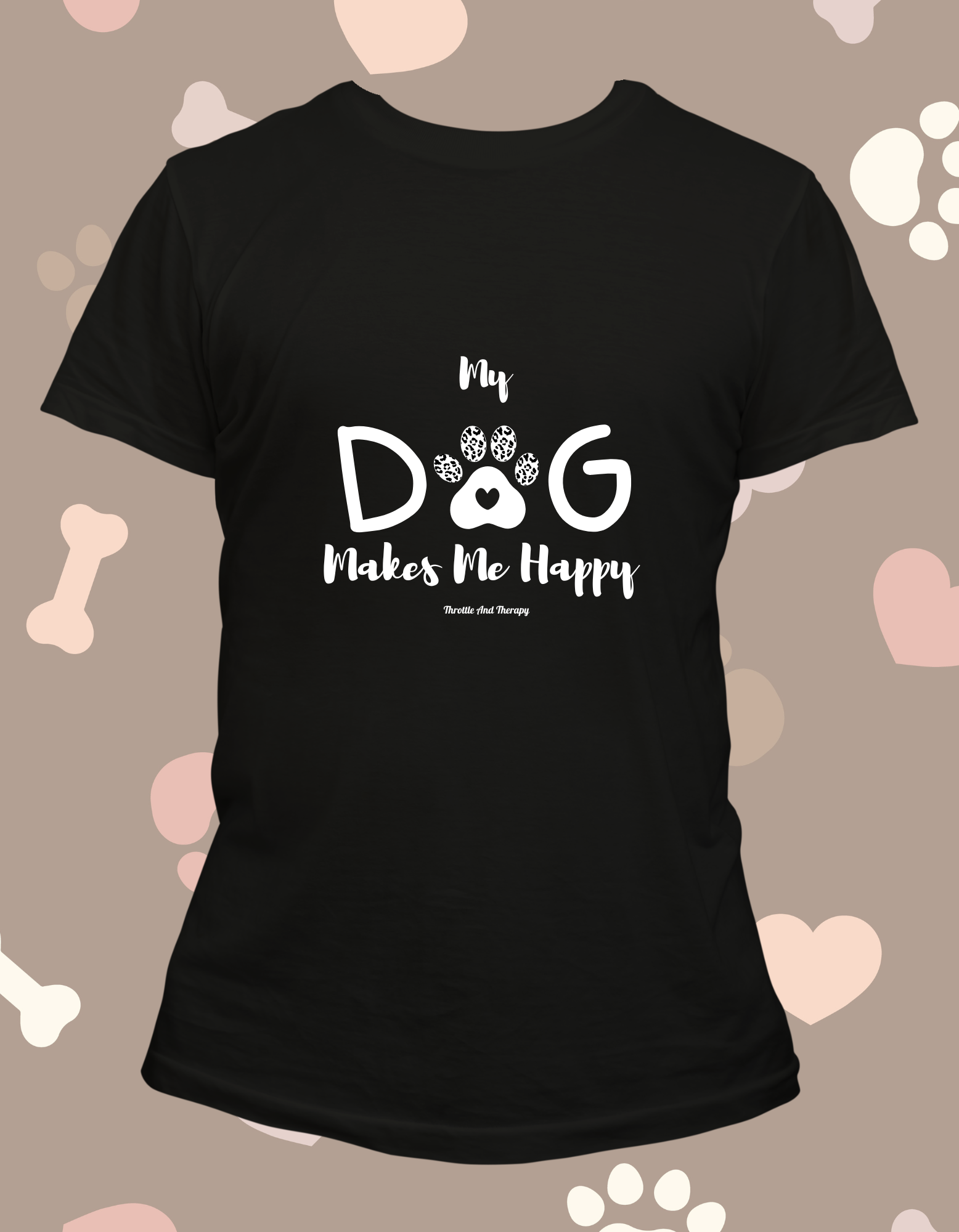 Celebrate the special bond between you and your dog with this "My Dog Makes Me Happy" shirt. Designed to raise awareness that animals provide essential emotional support and therapy, this shirt spreads a heartfelt message. Plus, a percentage of every sale benefits Rescue Riders Group, supporting animals in need. Show your love and make a difference every time you wear it.