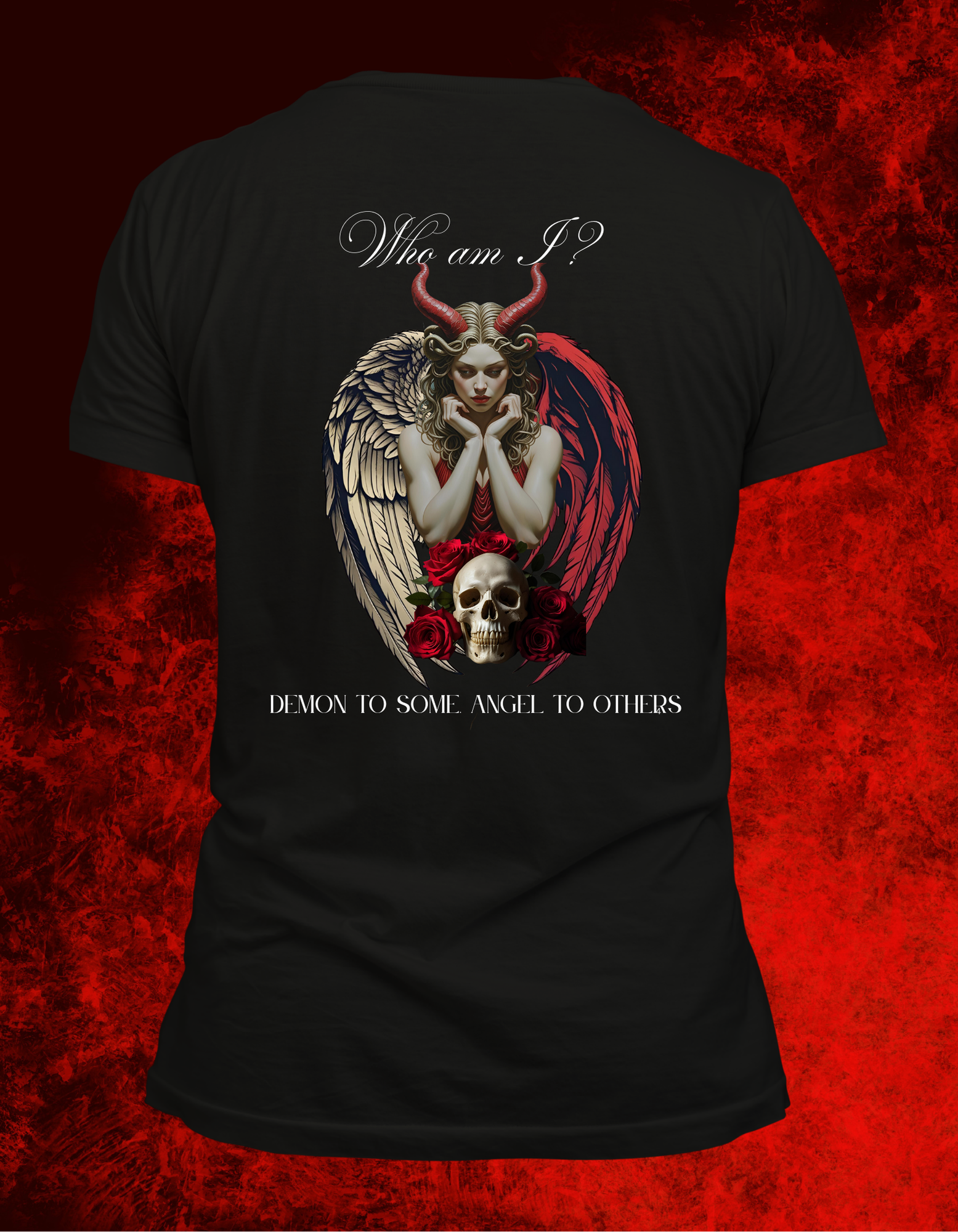 Embrace your unique duality with the "Who Am I?" shirt, a bold statement that captures the complexity within us all. To some, you're a devil; to others, an angel—but ultimately, your own truth is what truly matters. Wear this shirt to celebrate the power of self-acceptance and the strength found in being unapologetically yourself.