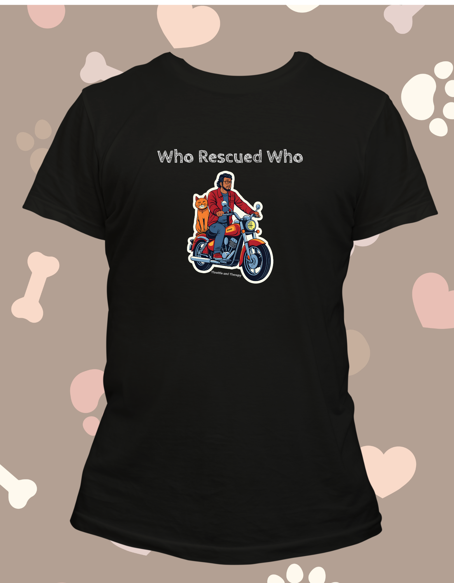 Celebrate the special bond between riders and their furry companions with this "Who Rescued Who" shirt featuring a motorcycle design. Perfect for animal lovers who understand that pets are a vital source of therapy and comfort. A portion of every purchase supports the Rescue Riders Group, helping animals find loving homes. Wear your compassion proudly and join a community that values rescue and healing on and off the road.